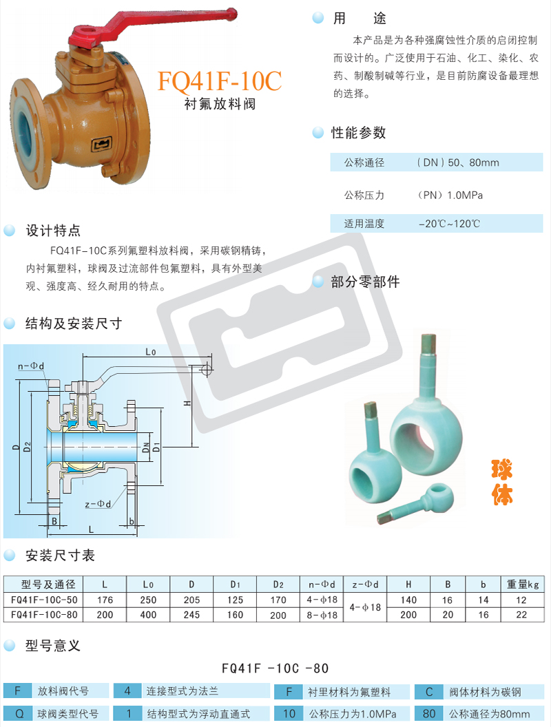 Q41F- 10CF系列襯氟放料閥,閥殼采用碳鋼精鑄,內(nèi)襯氟塑料,閥球及過流部件包氟塑料,具有外型美觀、強(qiáng)度高、經(jīng)久耐用的特點(diǎn)。