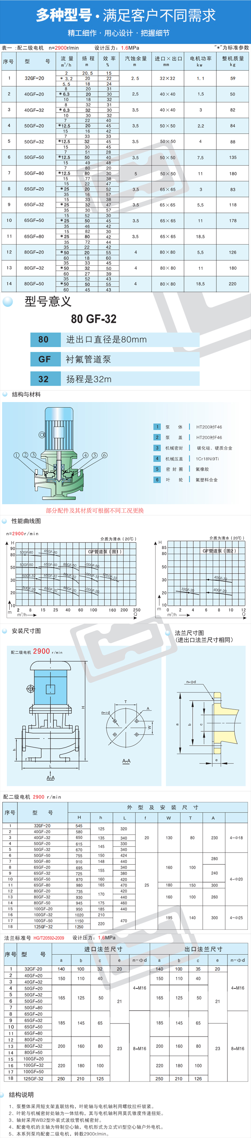 1、GF系列氟塑料管道泵為立式結(jié)構(gòu),進(jìn)出口口徑相同,且位于同一中心線上;